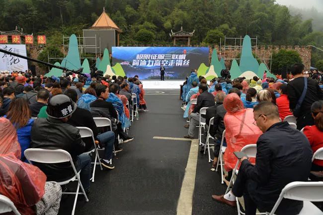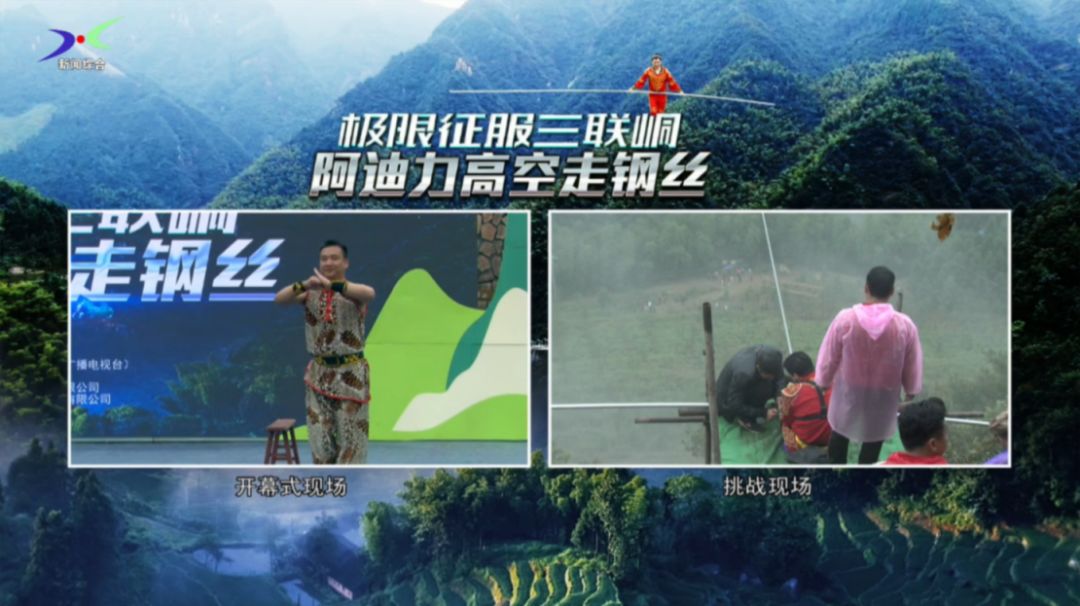 据悉:三联峒景区位于新化县维山乡四都三联洞村神象山内海拔1500余米,森林覆盖率达93%,是湘中“最后秘境”,现已是“国家3A级景区”。此次高空王子”阿迪力在新化县三联峒景区挑战极限,完成高空无保护走钢丝2036米和倒走1018米再度创下两项世界纪录。