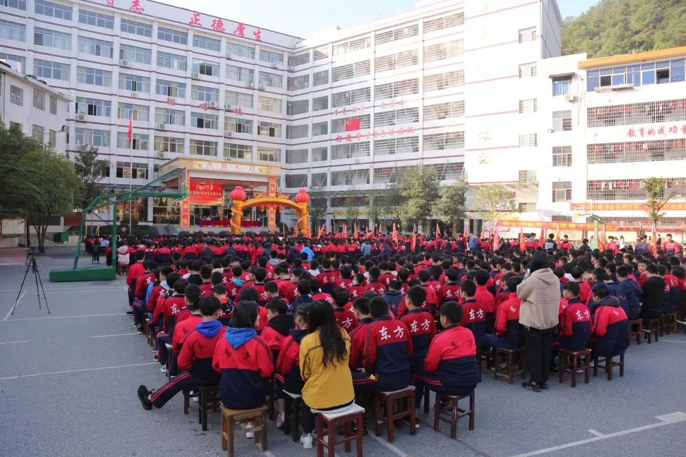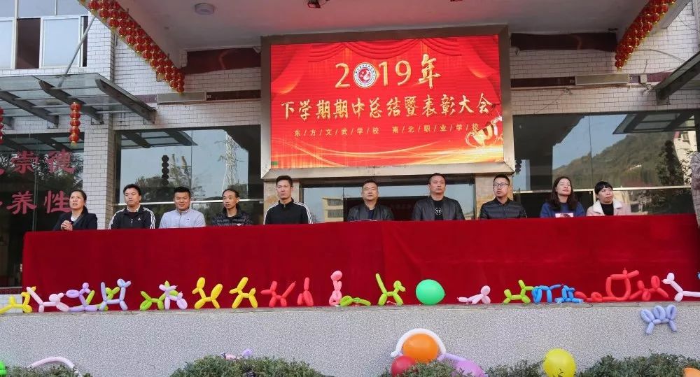 东方学子悟道修身作崇文典范、南北健儿练功励志成武术标兵。为表彰先进,激励后进,总结上半学期学校教育教学情况,营造热烈、和谐、积极向上的校园氛围,2019年11月15日上午,东方文武学校、南北职业学校在学校大操场举行了2019年下学期期中考试总结暨表彰大会。