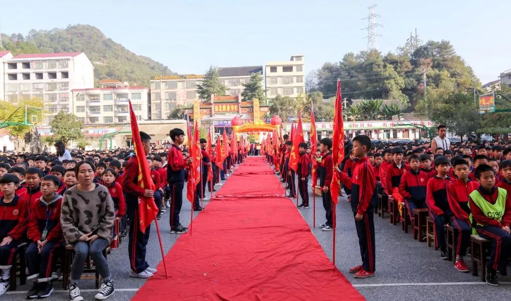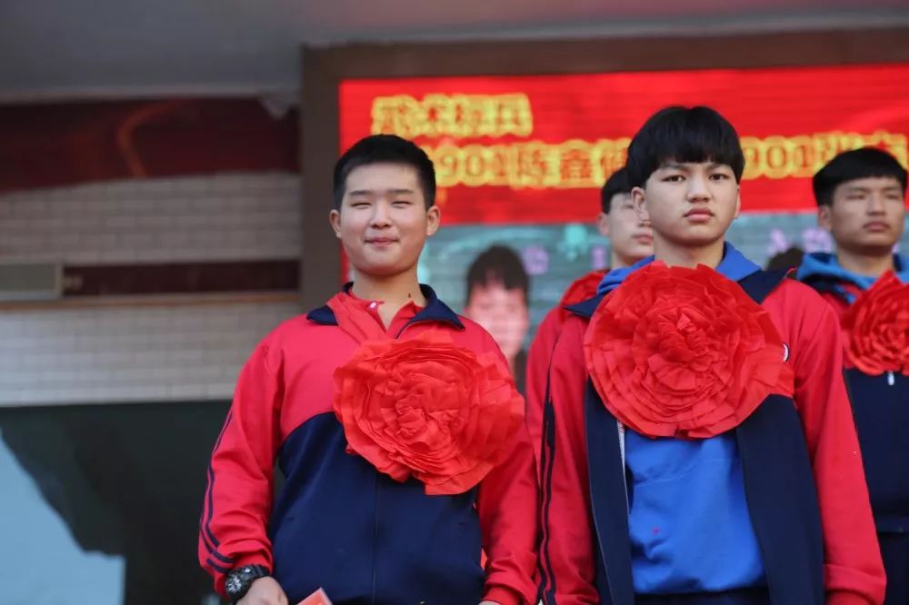 旭日东升,霞光四溢。操场上学生满座,教师教练悉数在场,鲜红的充气拱门,红地毡铺就的“星光大道”,整齐排列迎风飘扬的班旗,装点一新的颁奖台,整个操场显得十分庄重靓丽。