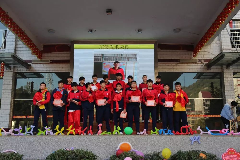 在此次总结表彰大会上,段政雄、文伟琪、黄宏、周星星、陆志强等同学获得年级优秀学生荣誉称号;刘嘉豪、袁傲、向伟洁、周裕平、康方宇等同学获得班级优秀学生荣誉称号;汪泽宇、王行红、陈智阳、罗森亮、刘宏伟等同学分别获得武术标兵荣誉称号。学校领导和各部级领导分别为获奖者颁发了奖品和荣誉证书。